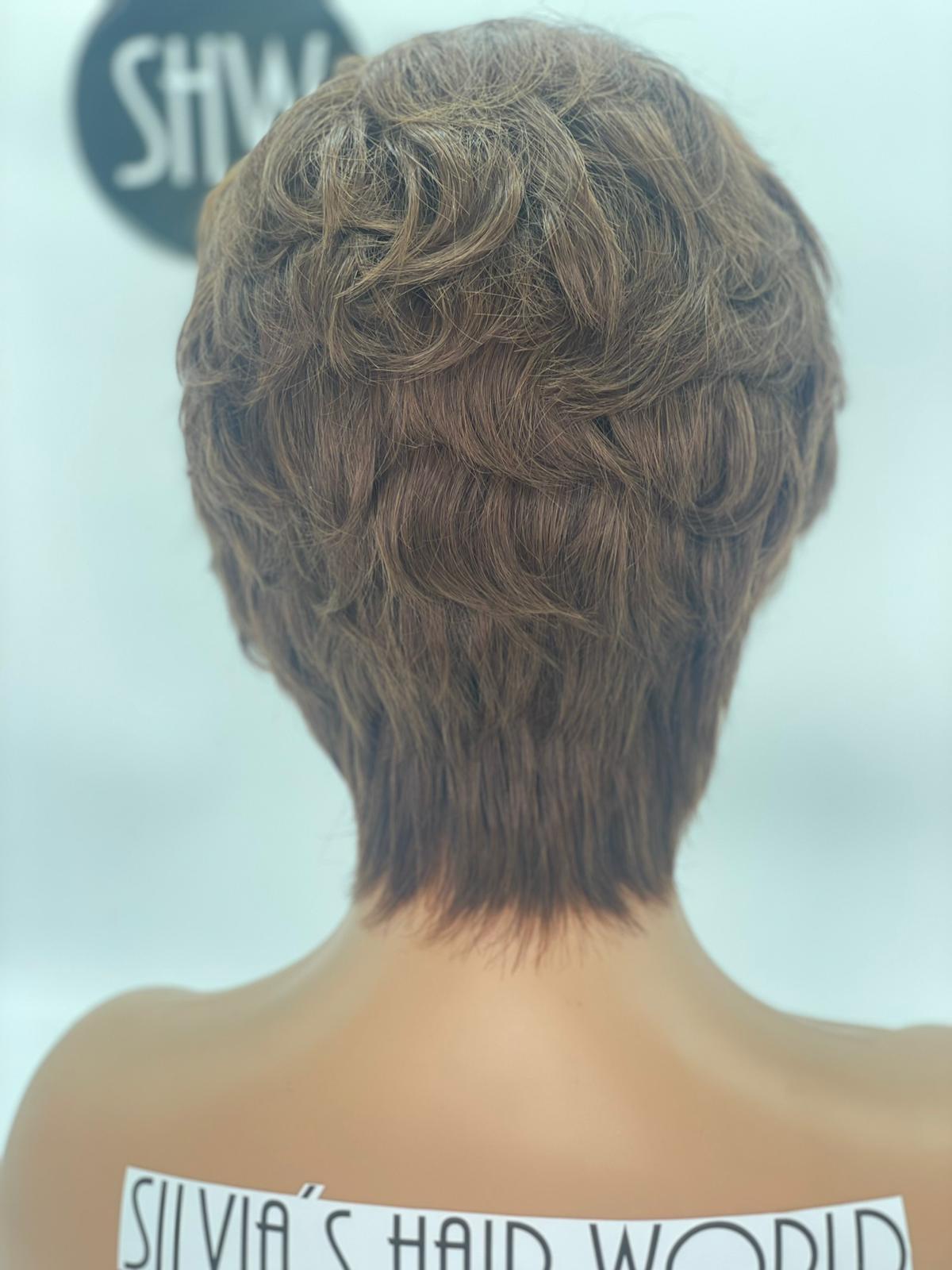 Peluca de cabello natural con acabado impecable que ofrece un aspecto auténtico y sofisticado. El color castaño cálido proporciona versatilidad para adaptarse a diferentes estilos y tonos de piel. Confeccionada con técnicas profesionales, garantiza comodidad durante el uso prolongado y permite un peinado natural. Ideal para quienes buscan una solución capilar de calidad que combine naturalidad con durabilidad. Fácil de mantener y estilizar según tus preferencias personales.